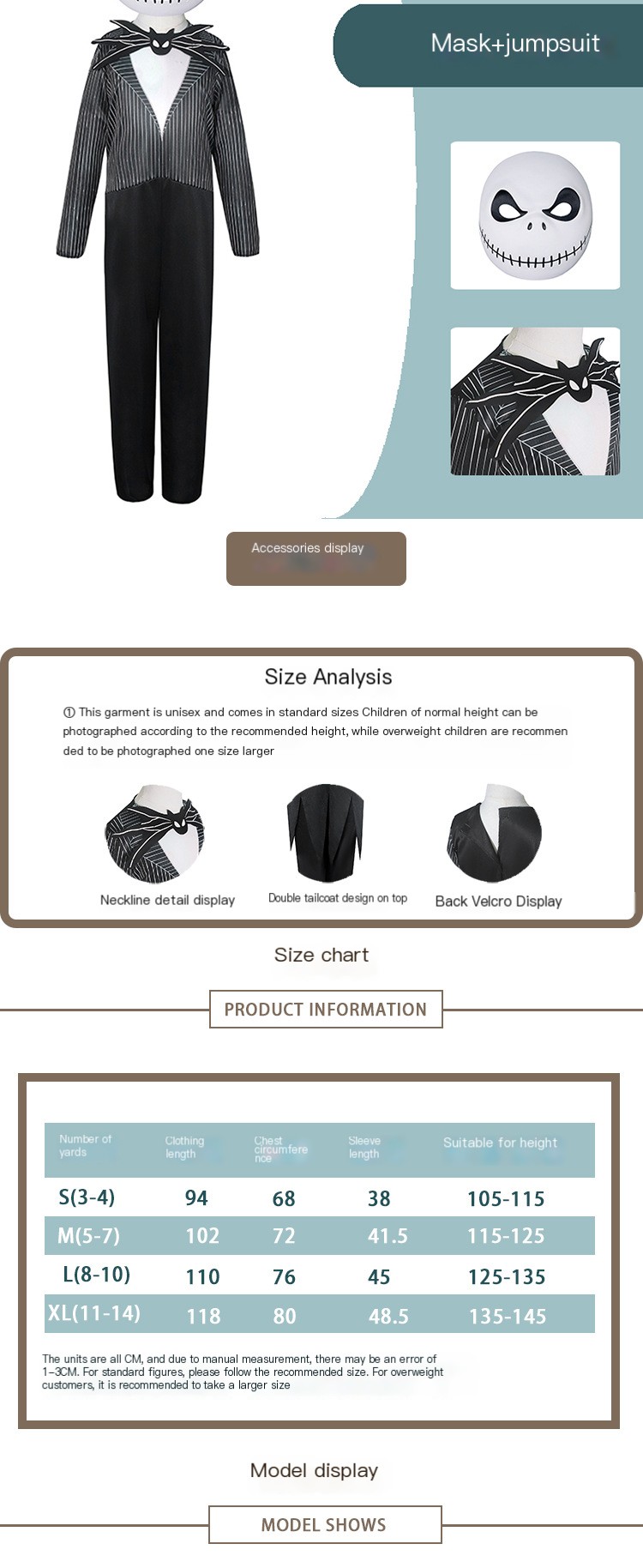 Available in multiple sizes, this costume is designed to cater to various heights, ensuring a perfect fit for everyone. Whether you're 185cm, 180cm, or anywhere in between, you can find the ideal size that allows you to move freely and confidently.