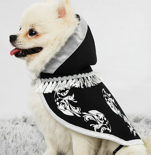 The cloak comes in a classic black color, making it versatile for various Halloween themes. Whether you're planning a haunted house visit or a fun costume party, this cloak will keep your pet looking adorable and stylish.